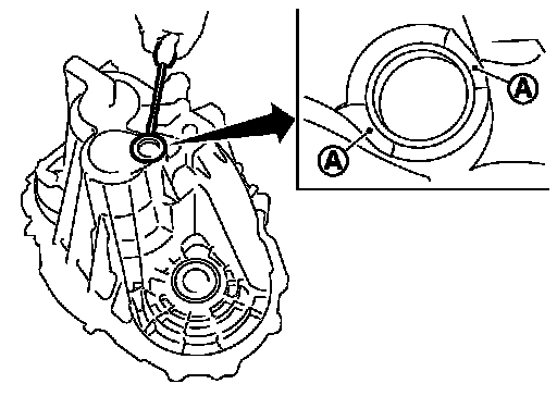 - Access bore plug from cutout (A) of transaxle case when removing.