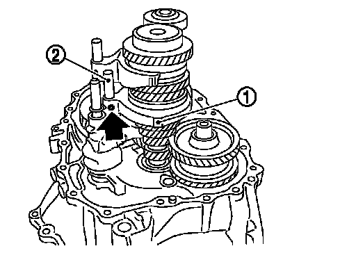 5.Remove back-up lamp switch (2) and plunger from transaxle case.