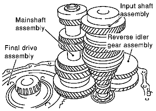 a.Remove a set of input shaft assembly, mainshaft assembly, and reverse idler gear assembly by tapping the tip of input shaft from the back of the clutch housing with a plastic hammer.