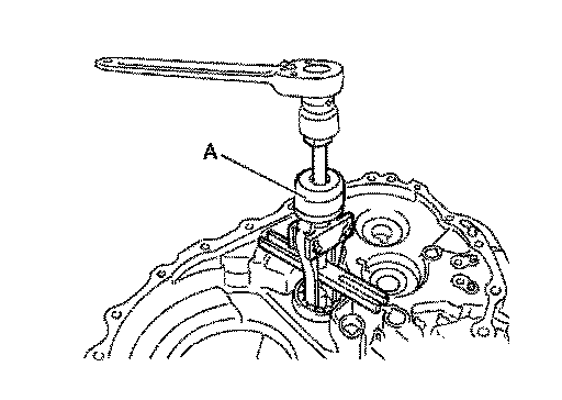 32.Remove mainshaft bearing retainer and then mainshaft front bearing from clutch housing using Tool (A).