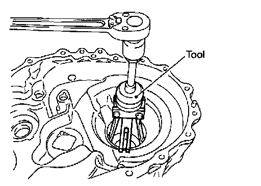 15.Remove differential side bearing outer race from transaxle case using Tool, then remove differential side bearing adjusting shim from transaxle case.