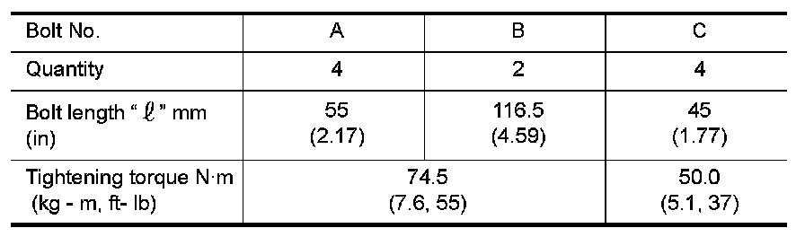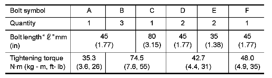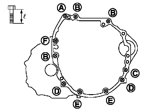 - When installing the transaxle assembly to the engine, install the bolts following the standard below.