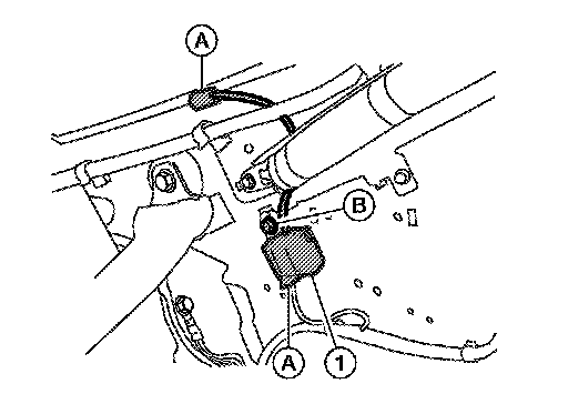 6.Remove the bolt (B), and the condenser (1) from the vehicle body.