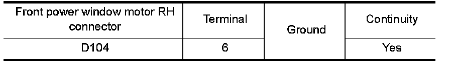 3.Check continuity between front power window motor RH connector and ground.