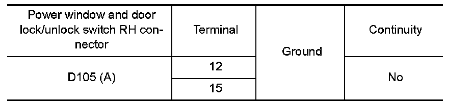 3.Check continuity between power window and door lock/unlock switch RH connector (A) and ground.