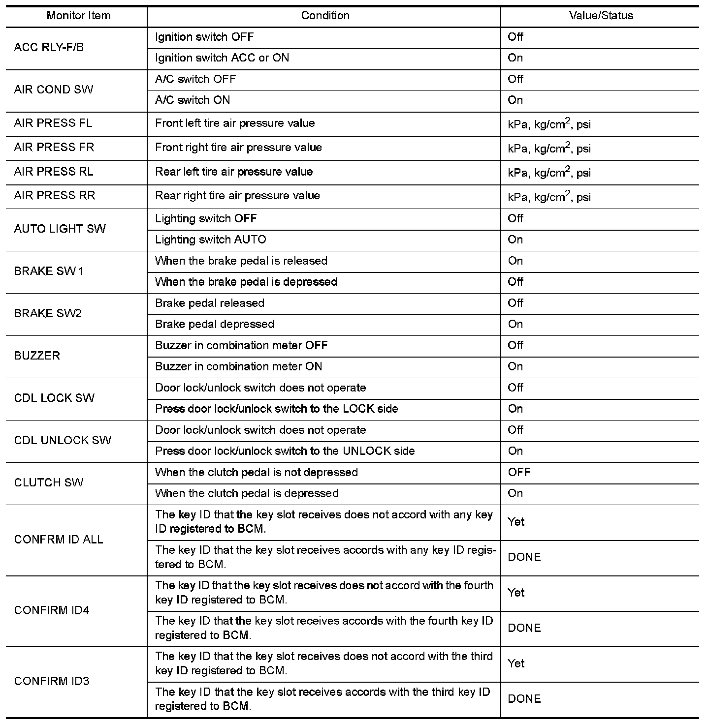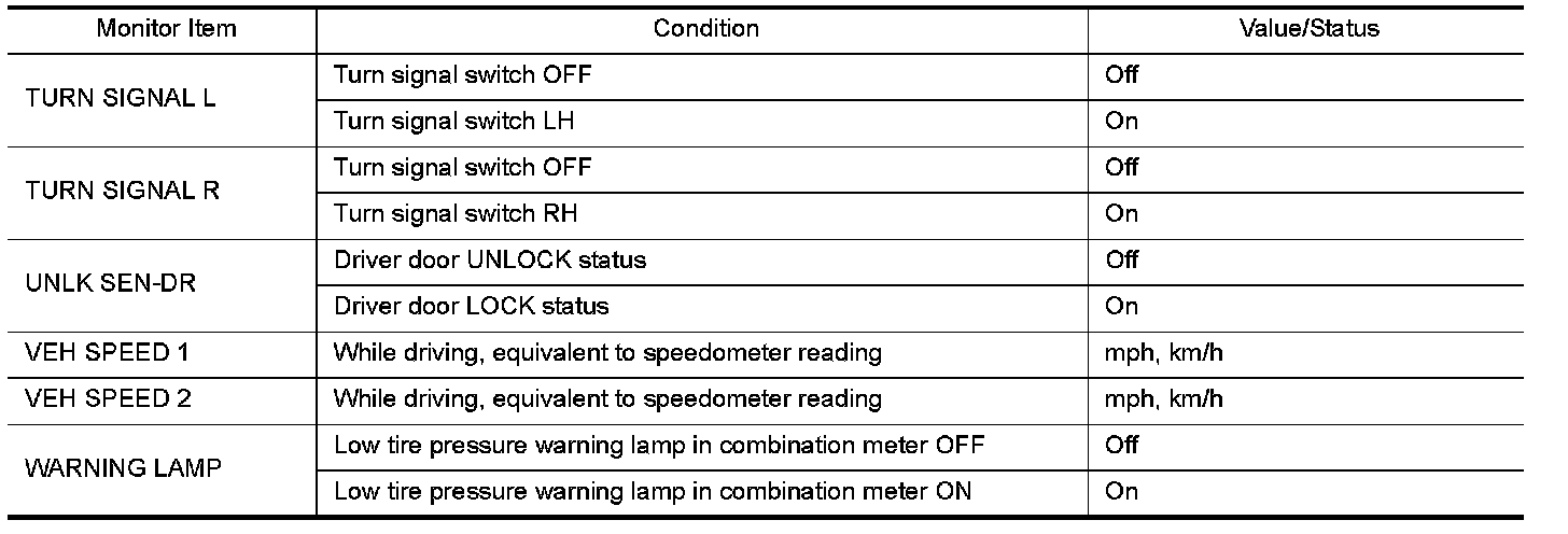 - Display tire pressure reported by the TPMS transmitter