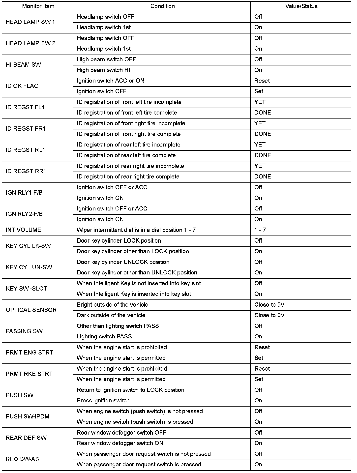 - Check Intelligent Key relative signal strength