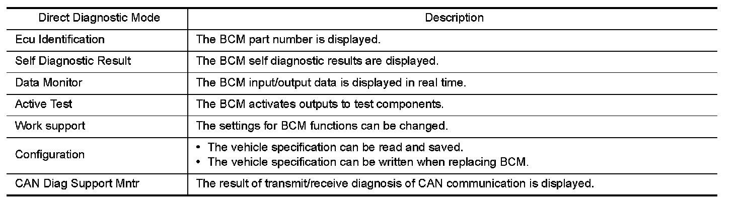 CONSULT performs the following functions via CAN communication with BCM.