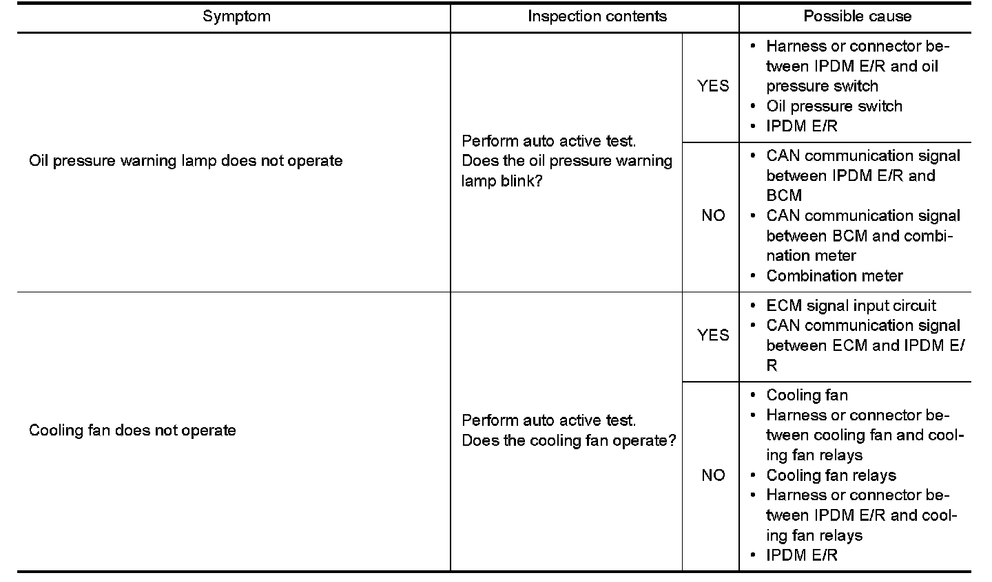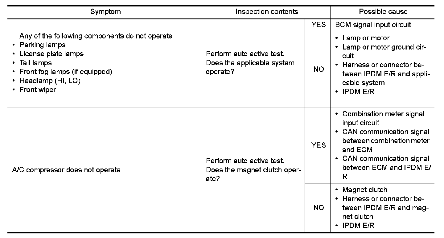 - The auto active test facilitates troubleshooting if any systems controlled by IPDM E/R cannot be operated.