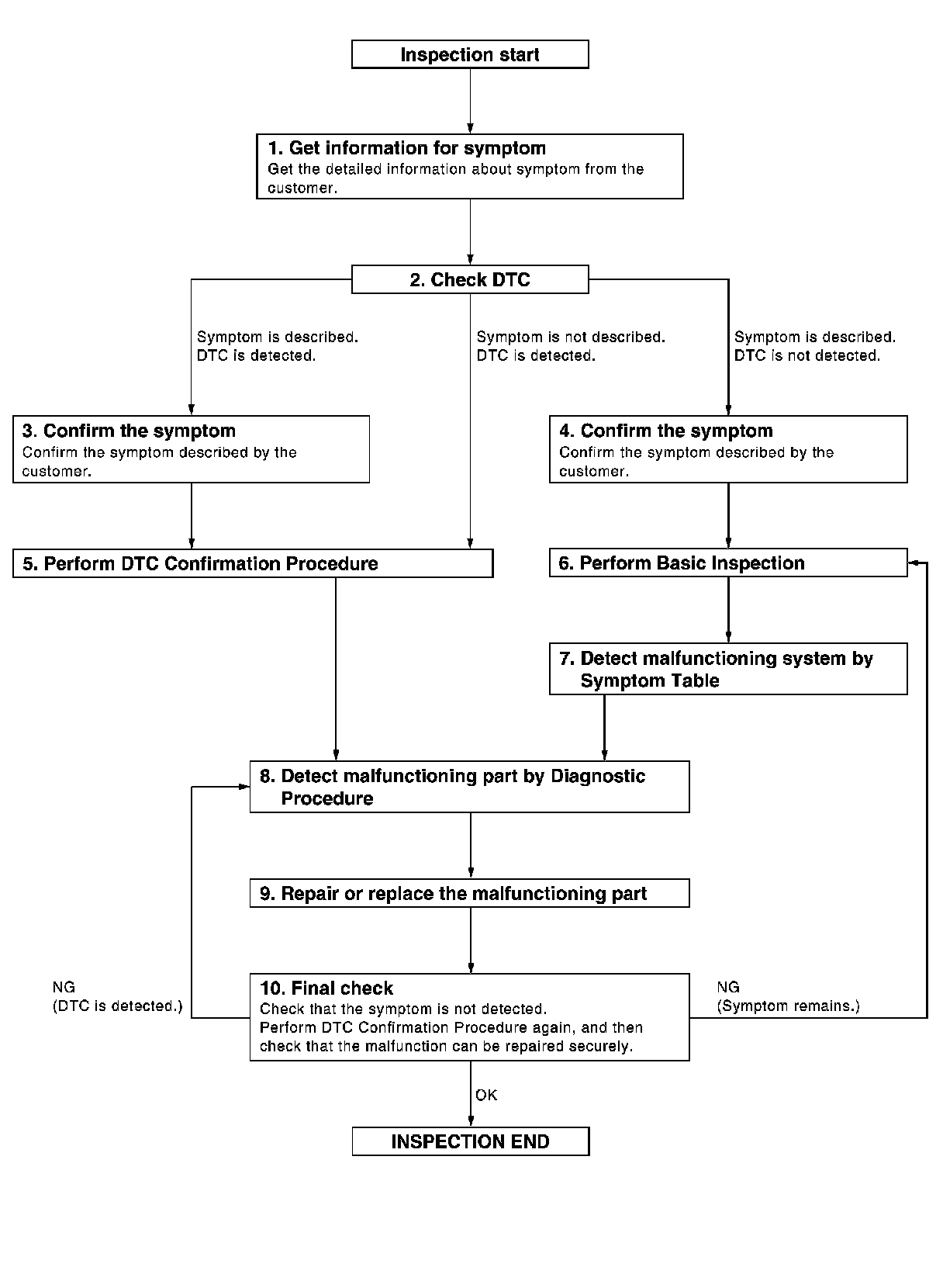 When symptom was described from the customer, refer to confirmed symptom in step 3 or 4, and check that the symptom is not detected.