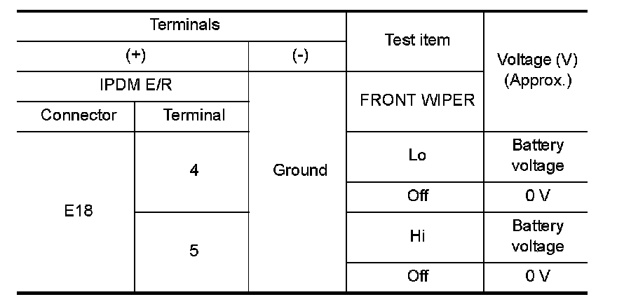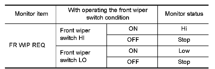 2.While operating the test item, check that front wiper LO/HI operation and OFF.