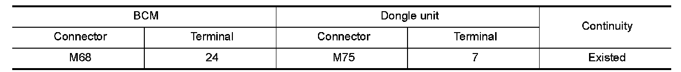3.Check continuity between BCM harness connector and dongle unit harness connector.
