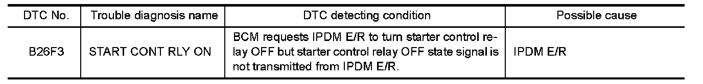 Starter control relay, integrated in IPDM E/R, permits the starter relay operation when in the N or P position. It is installed parallel to the starter relay.