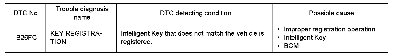 When door request switch or push-button ignition switch is pressed, BCM verifies Intelligent Key that is registered to the vehicle. If verification result is OK, door lock, door unlock, and engine start are allowed.