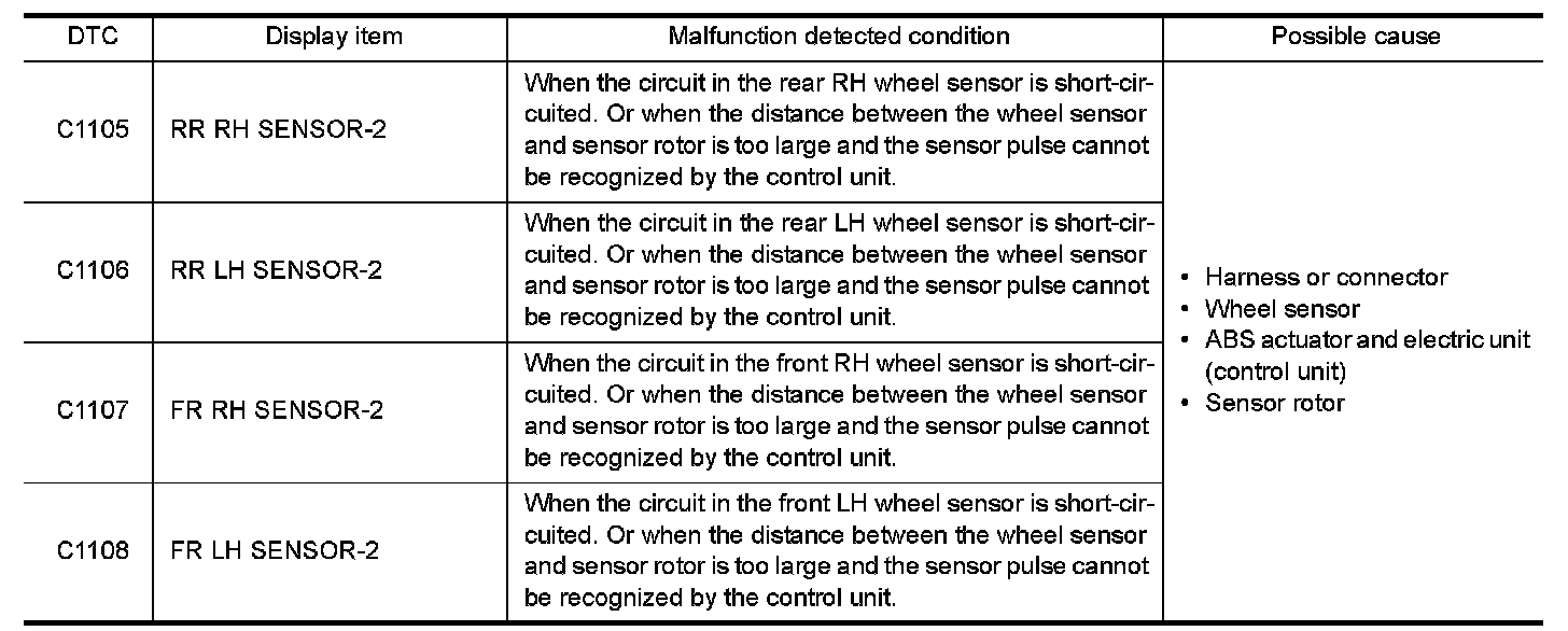 C1105, C1106, C1107, C1108 WHEEL SENSOR