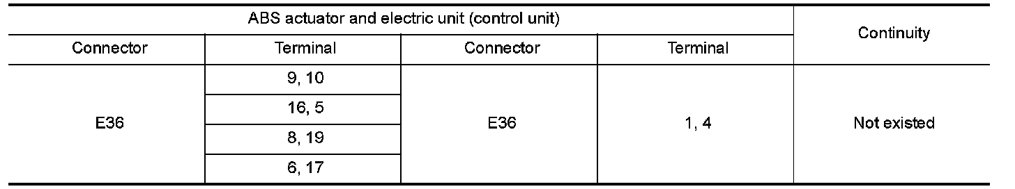 4.Check continuity between ABS actuator and electric unit (control unit) harness connector and the ground.