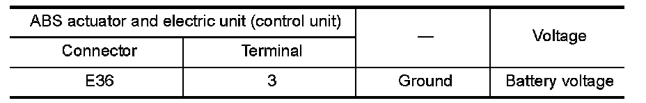 4.Check voltage between ABS actuator and electric unit (control unit) harness connector and ground.