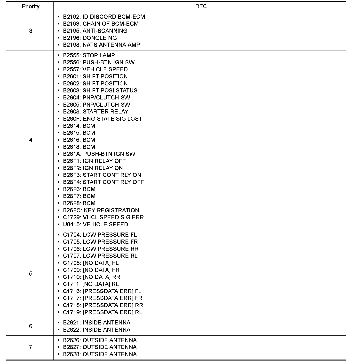 WITH INTELLIGENT KEY : DTC Inspection Priority Chart