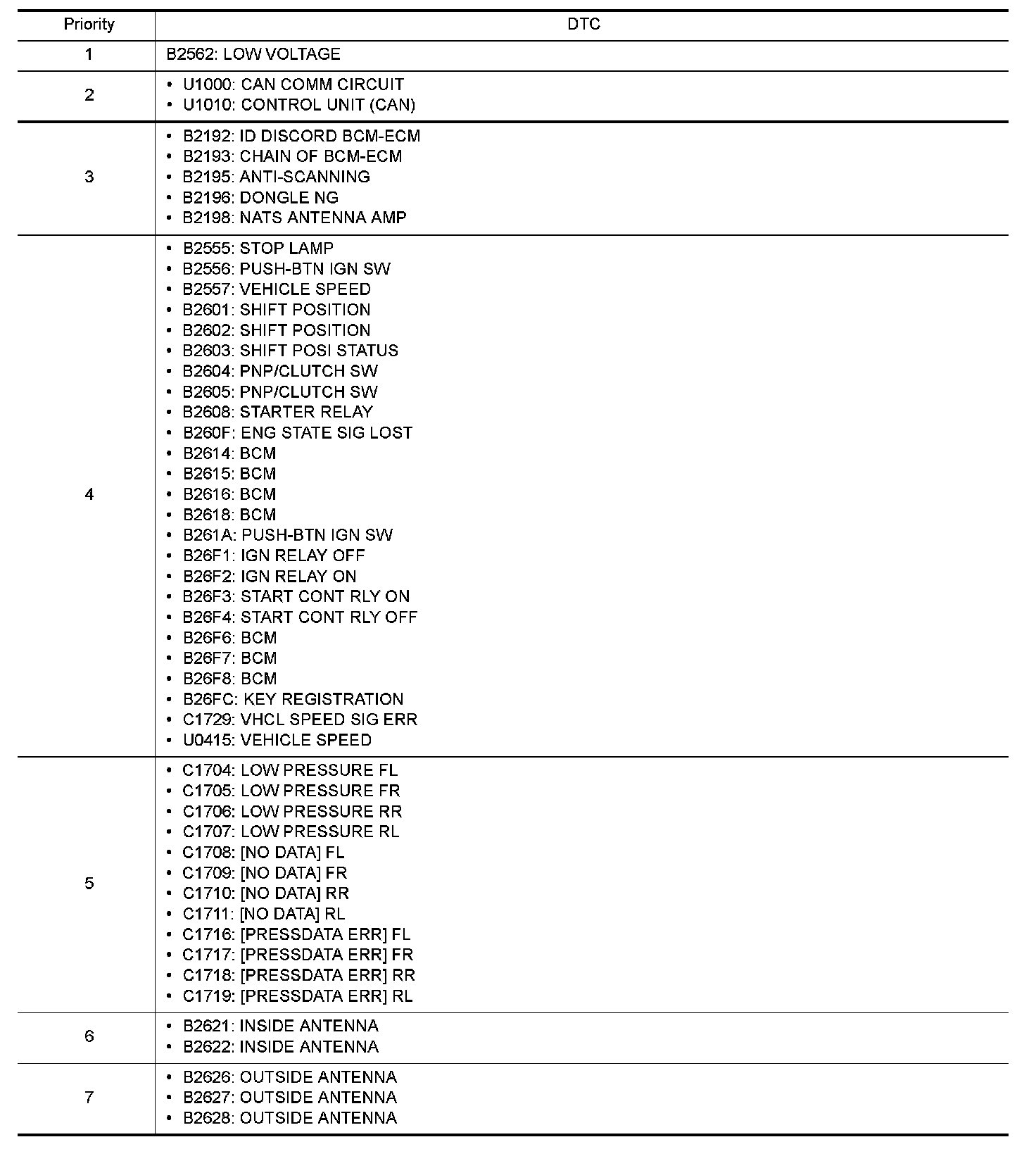 WITH INTELLIGENT KEY : DTC Inspection Priority Chart