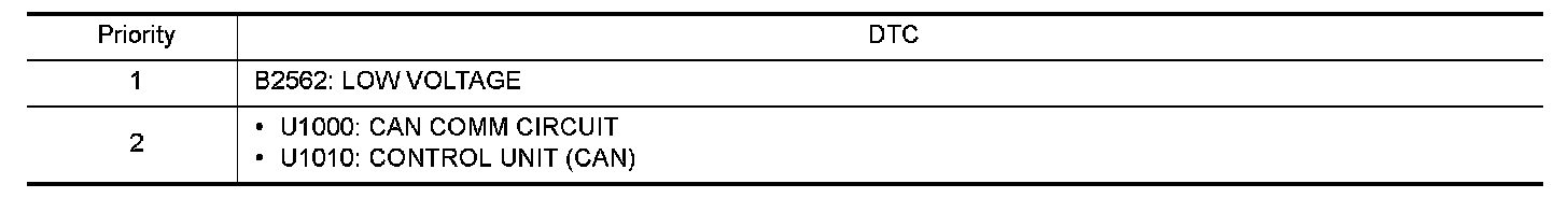 If some DTCs are displayed at the same time, perform inspections one by one based on the following priority chart.