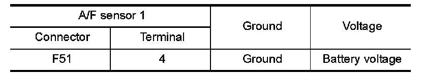 3.Check the voltage between A/F sensor 1 harness connector and ground.
