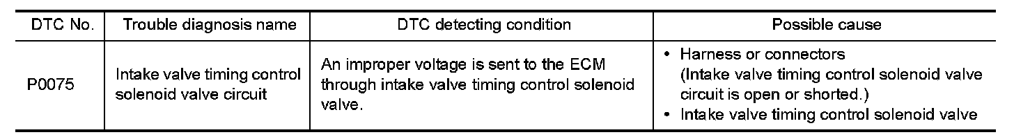 - Harness for open or short between IVT control solenoid valve and IPDM E/R