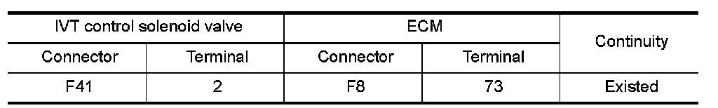 3.Check the continuity between IVT control solenoid valve harness connector and ECM harness connector.