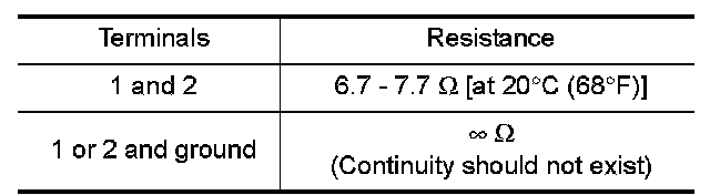 3.Check resistance between intake valve timing control solenoid valve terminals as per the following.