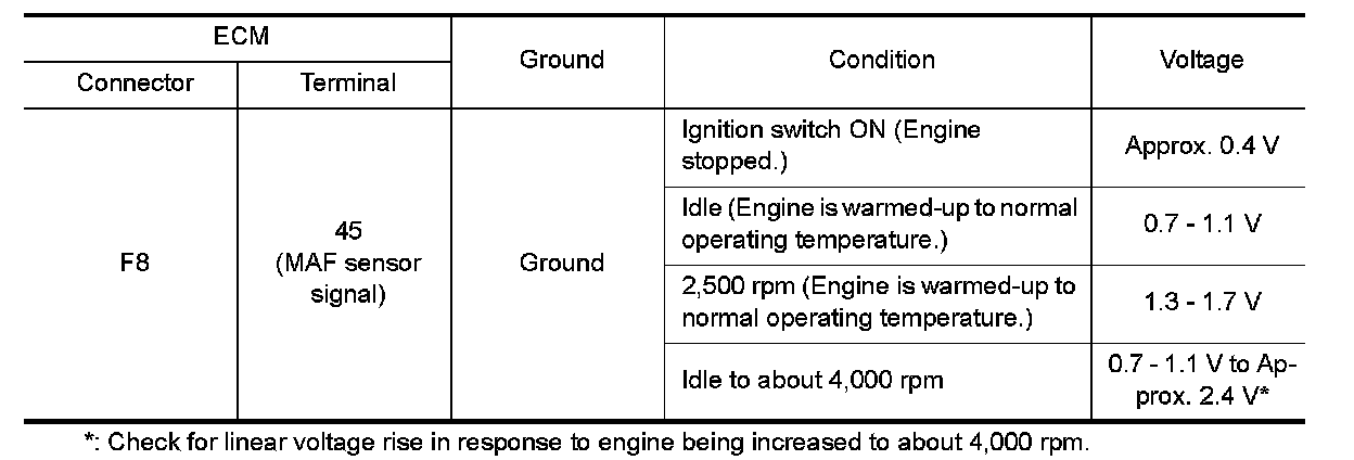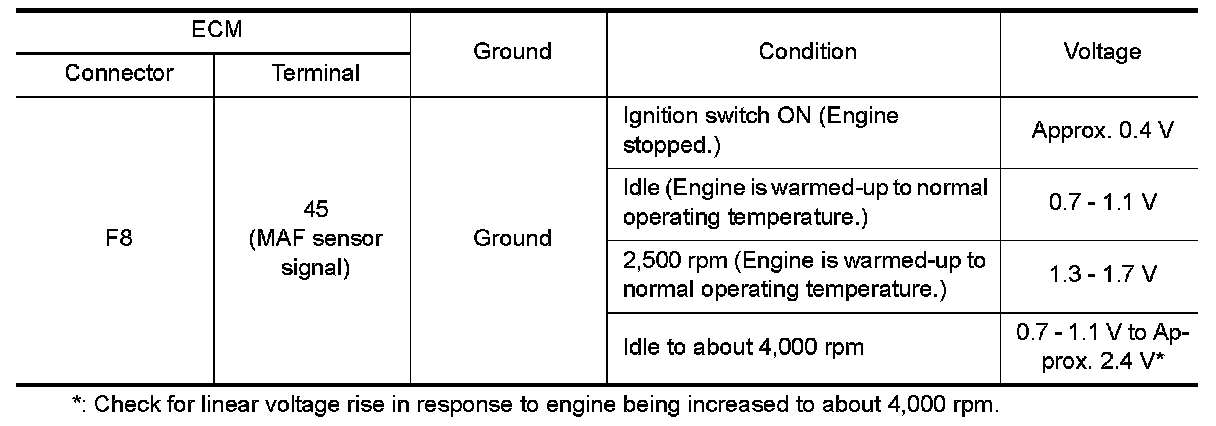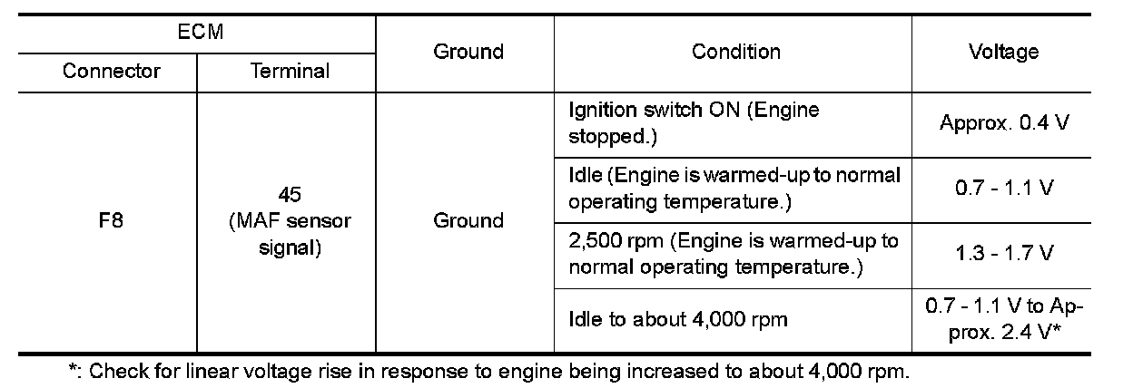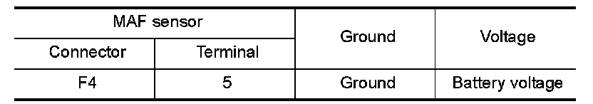 3.Check the voltage between MAF sensor harness connector and ground.