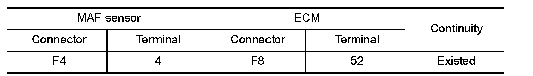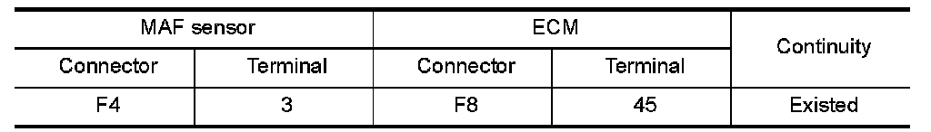 1.Check the continuity between MAF sensor harness connector and ECM harness connector.