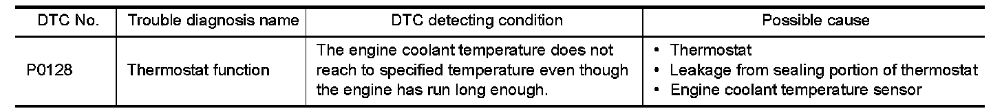 If DTC P0128 is displayed with DTC P0300, P0301, P0302, P0303 or P0304, first perform the trouble diagnosis for DTC P0300, P0301, P0302, P0303, P0304. Except For California.