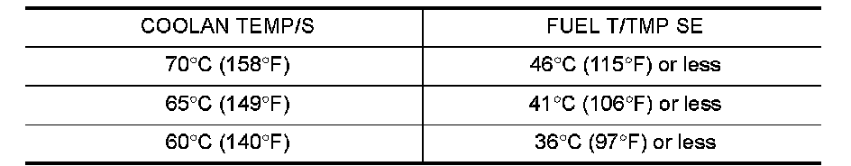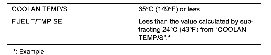 Drive the vehicle under the conditions instructed below until the difference between "COOLANT TEMP/S" and "FUEL T/TMP SE" becomes at least 24�C (43�F).