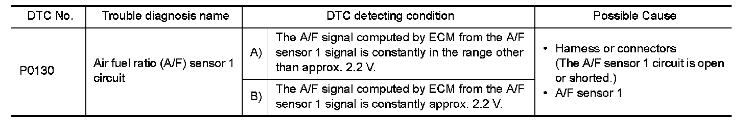 To judge the malfunction, the diagnosis checks that the A/F signal computed by ECM from the A/F sensor 1