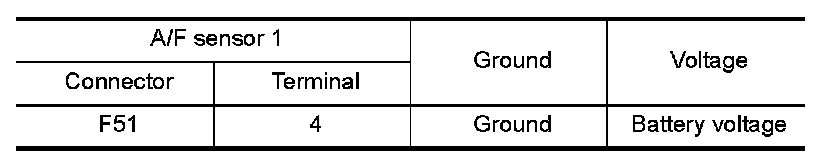 3.Check the voltage between A/F sensor 1 harness connector and ground.