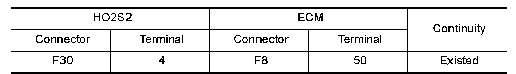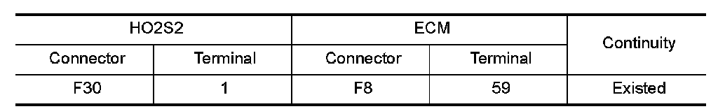 1.Check the continuity between HO-2S2 harness connector and ECM harness connector.