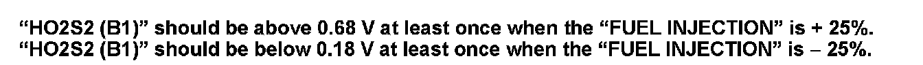 7.Check "HO-2S2 (B1)" at idle speed when adjusting "FUEL INJECTION" to ± 25%.