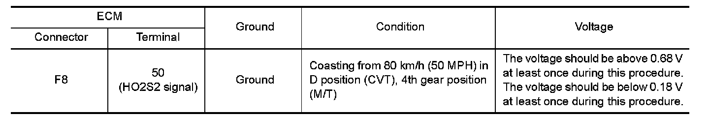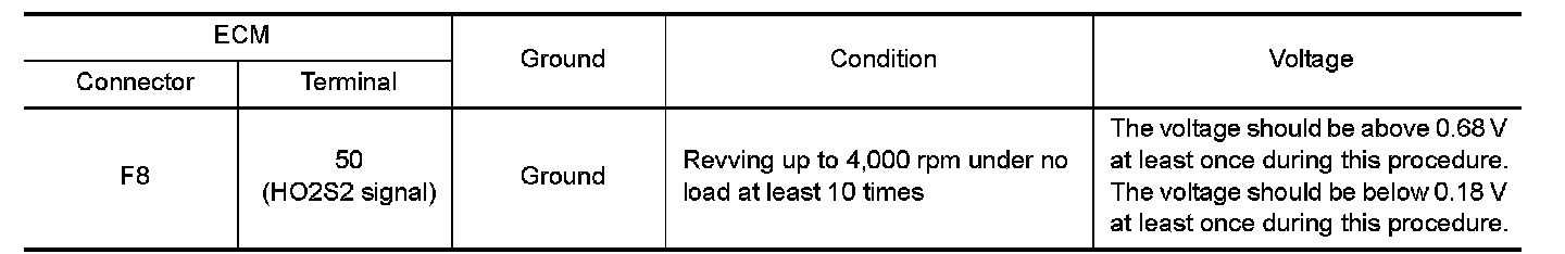 2, ECM monitors whether the switching response of the sensor's voltage is faster than specified during various driving conditions such as fuel cut.