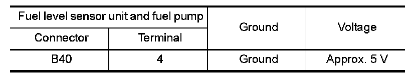 4.Check the voltage between "fuel level sensor unit and fuel pump" harness connector and ground.
