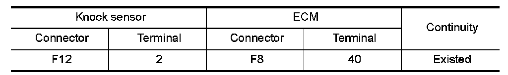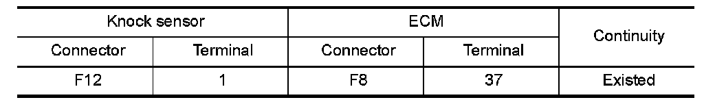 1.Check the continuity between knock sensor harness connector and ECM harness connector.
