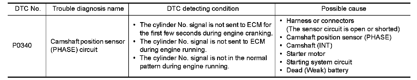 When the crankshaft position sensor (POS) system becomes inoperative, the camshaft position sensor (PHASE) provides various controls of engine parts instead, utilizing timing of cylinder identification signals.