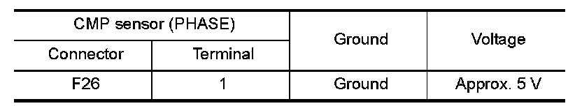 3.Check the voltage between CMP sensor (PHASE) harness connector and ground.