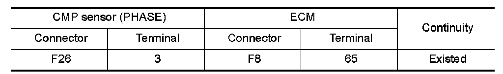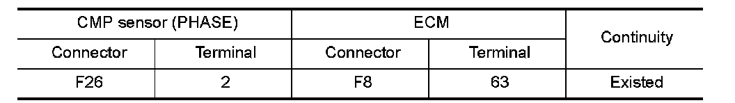2.Check the continuity between CMP sensor (PHASE) harness connector and ECM harness connector.