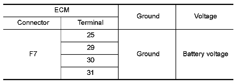 6.Check the voltage between ECM harness connector and ground under the following condition.