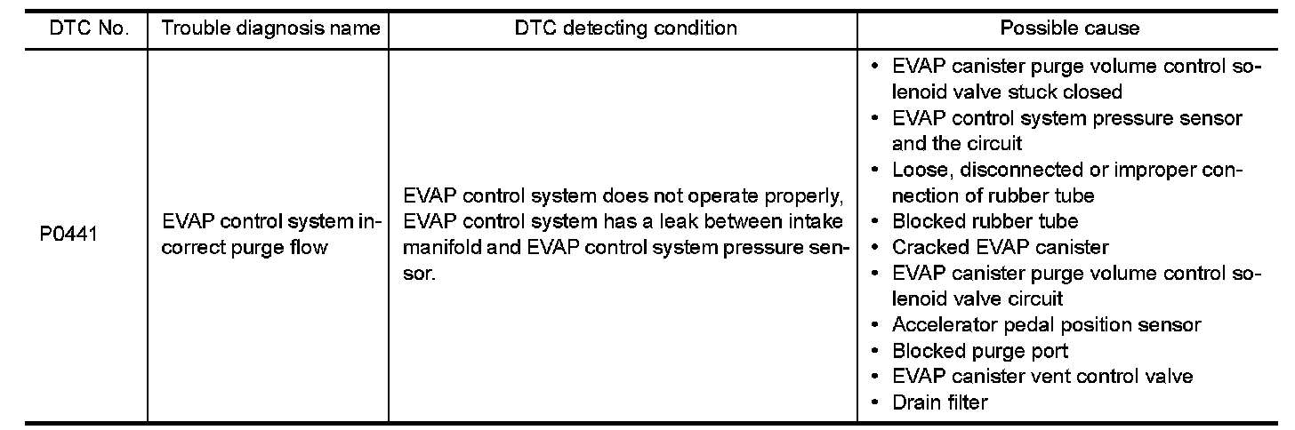 If DTC P0441 is displayed with other DTC such as P2122, P2123, P2127, P2128 or P2138, first perform trouble diagnosis for other DTC.