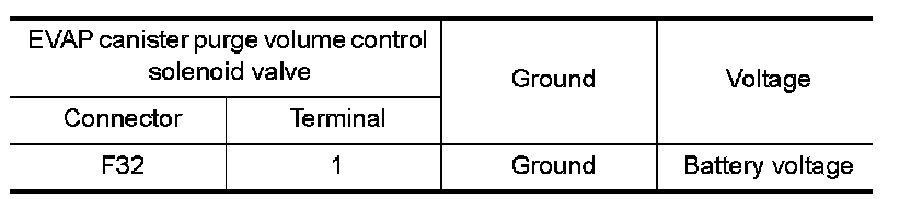 4.Check the voltage between EVAP canister purge volume control solenoid valve harness connector and ground.
