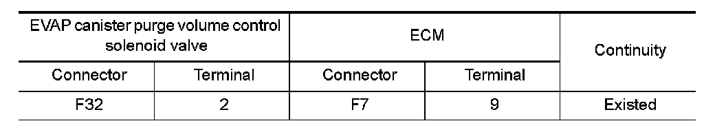 - Harness for open or short between EVAP canister purge volume control solenoid valve and ECM