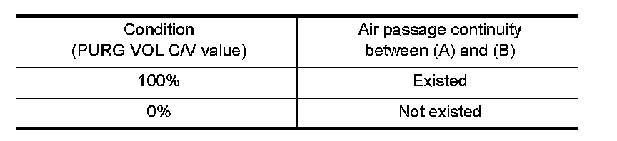 4.Check air passage continuity of EVAP canister purge volume control solenoid valve under the following conditions.