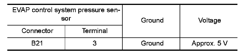 2.Check the voltage between EVAP control system pressure sensor harness connector and ground.