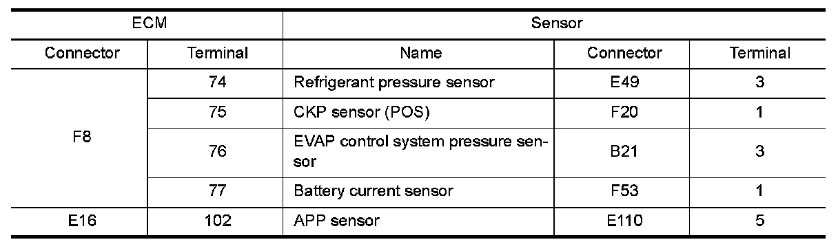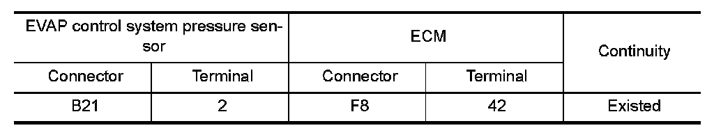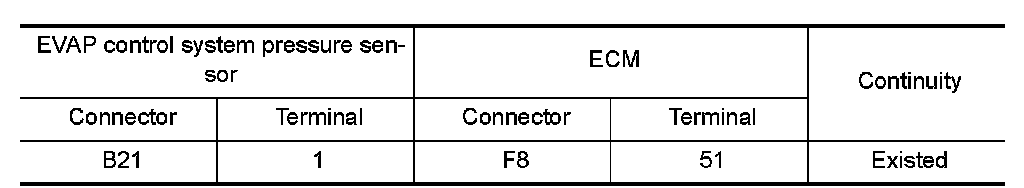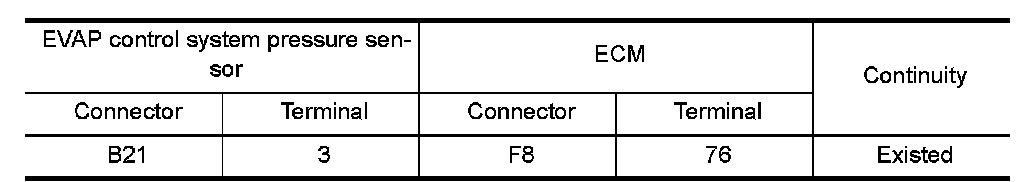 1.Check the continuity between EVAP control system pressure sensor harness connector and ECM harness connector.