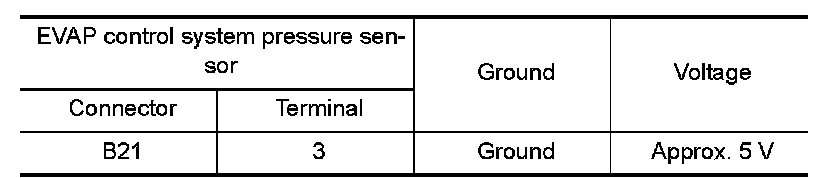 2.Check the voltage between EVAP control system pressure sensor harness connector and ground.